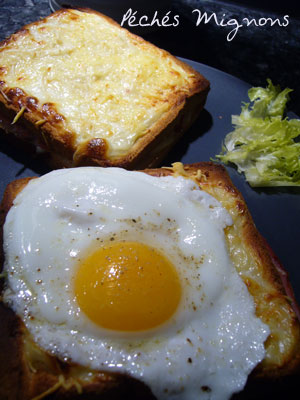 Pour le croque Madame, faire revenir les oeufs au plat et les déposer sur les croques chaud. A déguster avec une salade.