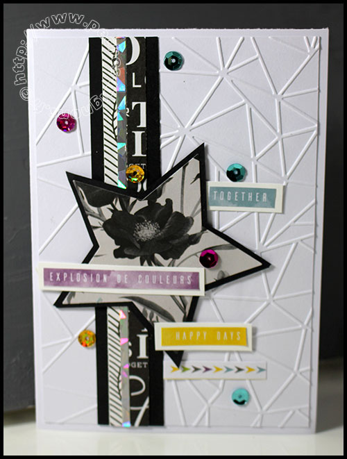 Hello, hello. Voici la petite carte que j’ai réalisé pour le challenge de l’Antre scrap …