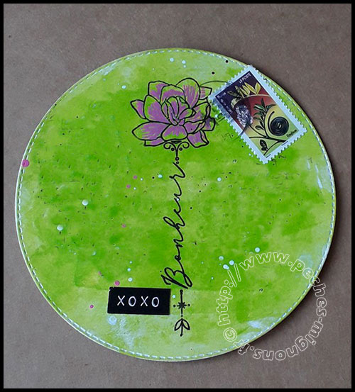 Hello, voici mon 4ème mail art, réalisé également pour l’échange du forum Le potager créatif. Les couleurs imposées étaient le rose et le vert… Les couleurs ne sont pas le reflet de la réalité, j’ai oublié de le prendre en photo et Marielle me l’a gentiment envoyé.