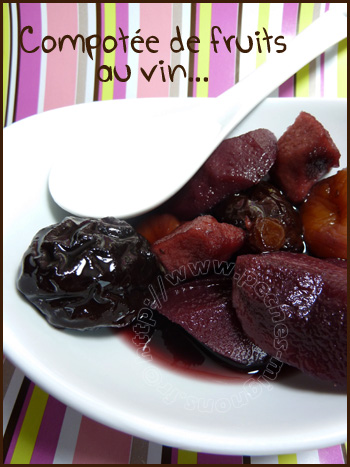 Me croirez vous si je vous dis que je n’avais jamais mangé de fruits au vin… J’avais je ne sais pas pourquoi un sentiment que je n’allais pas aimé. Et bien heureusement que quelque fois je me dis « pourquoi pas, essayons ! » J’ai particulièrement aimé le vin, j’ai choisi un vin fruitée et se fut un régal. Je dirais que le choix du vin est important, même si vous rajoutez des épices, la saveur ne sera pas la même d’une bouteille à une autre …