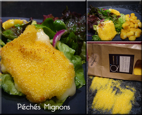 Ce que je vous propose n’est pas réellement une recette mais une idée de panure. Je l’ai trouvé très bien sur la mozzarella car les morceaux étaient gros, sur les pétoncles pour mon homme la panure était trop présente mais avec mon fils nous n’avons pas trouvé, peut être était ce trop petit. A vous de voir.